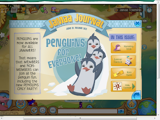 Hey, Jammers! I got a lot of news! First of all: Penguins! Their available to ALL Jammers, member and non-member! Next off, my new penguin! Next off, Crystal Sands has a new journey book! Here's what it looks like when it's empty, and when it's completed. Your prize is a cool lemonade stand! And finally, Freedom Day is coming!